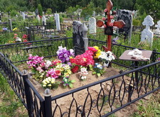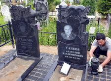 На этом участке мы работали с могилой, на которой сравнительно недавно произошло дозахоронение – земляной холм даже не успел как следует осесть и разойтись. На территории участка уже находился гранитный памятник специфической формы, копию которого нам и предстояло установить.