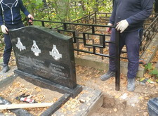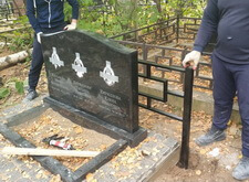 Для начала мы демонтировали уже имеющиеся элементы: снесли бетонный цоколь и изъяли стоящие кресты.