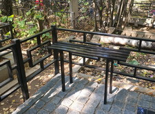 Изготавливаем вазу, наносим изображение. Перед памятником делаем небольшую площадку под траурную урну. Лавочка, установленная на участке, изготовлена полностью из металла. Торцы прямоугольных труб закрыты заглушками, которые надёжно защищают полости от проникновения влаги в период с осени до весны.