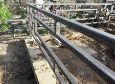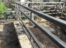 Возвращаемся на могилу. Подготавливаем оградку к покраске, зачищая её от старого покрытия. Параллельно устанавливаем подставку для памятника.