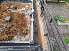 Сначала мы демонтируем всё, что находится на участке. Исключение составляет лишь бетонный цоколь, который нам не помешает. Приступаем к вкручиванию свай.
