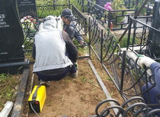 В данном случае мы приступили к работе на уже существующей могиле, на который были памятник с цветником и оградка. Клиенту мешала трава на участке, поэтому было принято решение отсыпать территорию каменной крошкой.