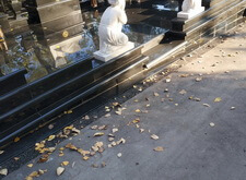 На последних фотографиях представлен внешний вид места захоронения на момент сдачи объекта: прилежащая территория приподнята, мраморные элементы мемориальной композиции покрыты гидрофобным раствором, портрет усопшего и его статуя приведены в надлежащий вид.