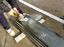 Начинается процесс монтажа. Доставляем памятники, крепим их, приклеиваем и насаживаем на штыри все конструктивные элементы надгробий.