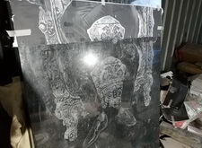 Проводим все те же действия на лицевой стороне памятника, на этот раз гравируем портрет умершего в кресле. Как и с ростовым изображением, лицо выбивается станком, остальное – ручная работа.
